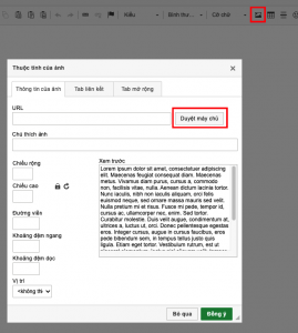 OK rồi, và khi bấm vào biểu tượng Picture ở editor thì popup sẽ hiển thị thêm nút Duyệt máy chủ (Browse, tuỳ vào ngôn ngữ mà bạn thiết lập)